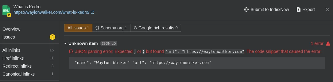 I found that I had Structured data has schema.org validation error on essentially every single page on my blog, turns out I had made some changes and have never tried to validate it. Damn json and its hatred towards trailing commas.