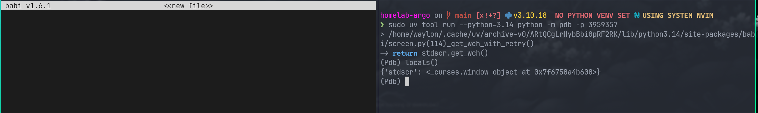 uv tool run --python=3.14 python -m pdb -p8605